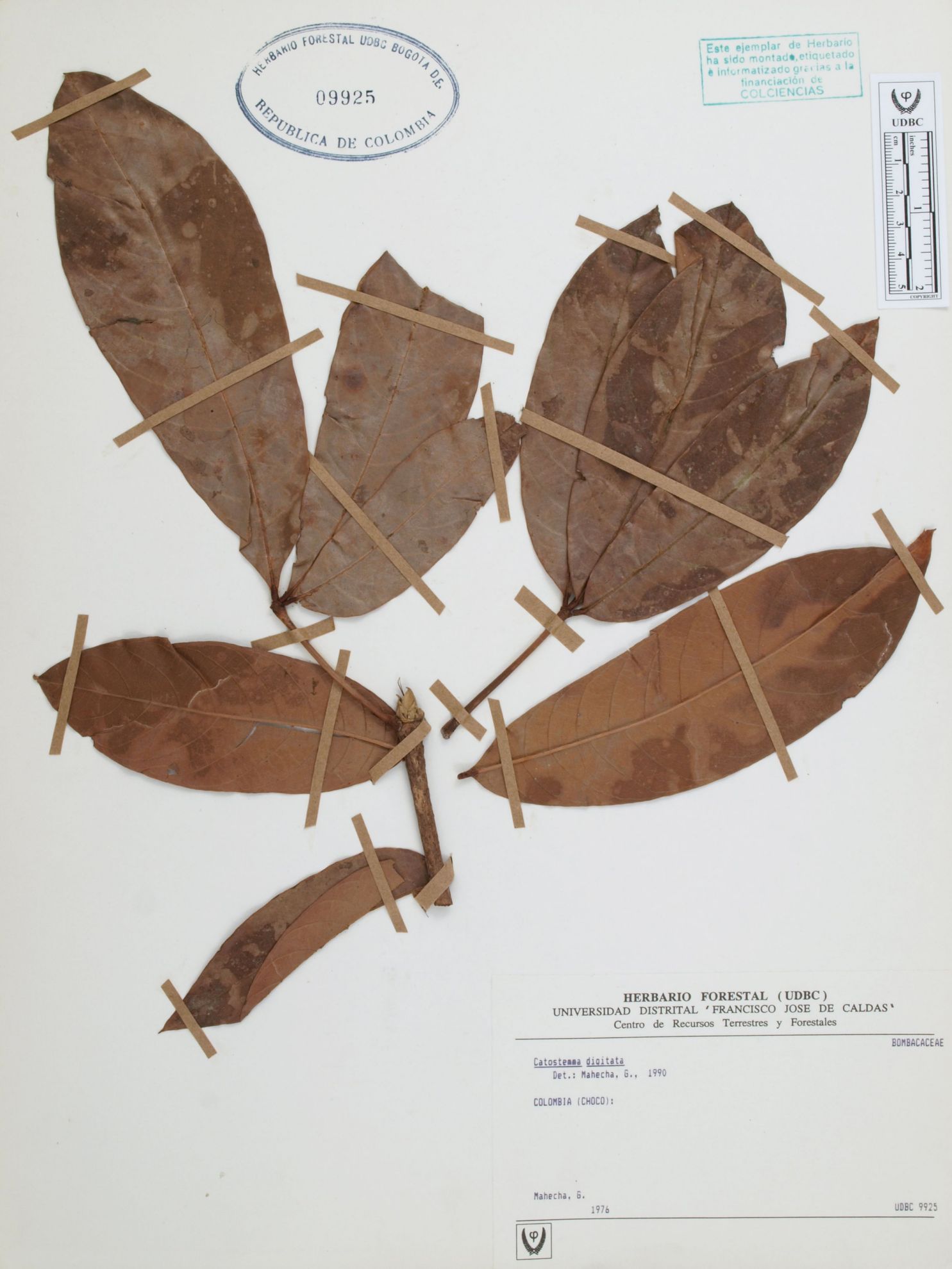 Fotografía del ejemplar Mahecha, G., determinado como Catostemma digitata en el año 1990