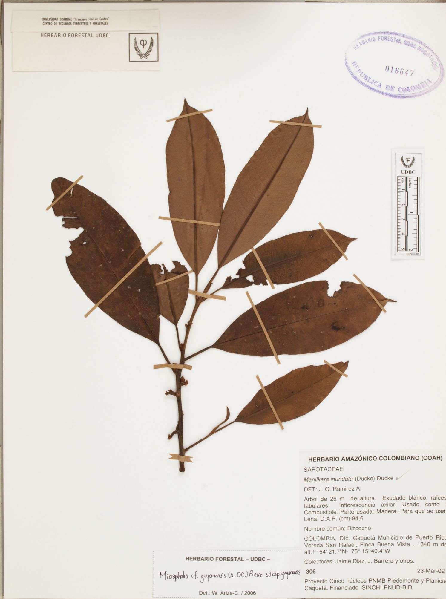 | dc.description | Fotografía del ejemplar Díaz, J. 306, determinado como Micropholis guyanensis subsp. guyanensis en el año 2006 | |
