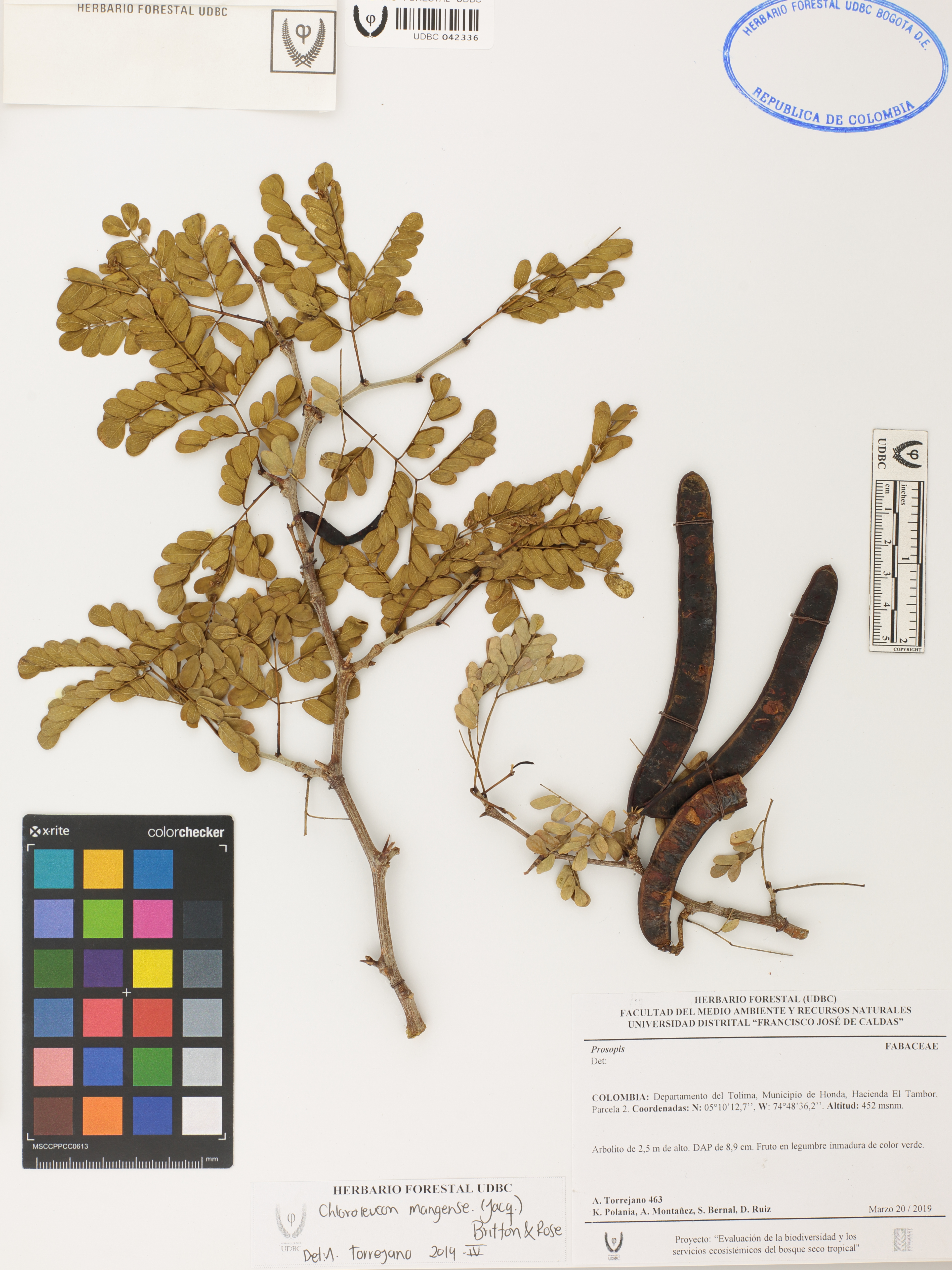 Fotografía del ejemplar Torrejano, A. 463, determinado como Chloroleucon mangense en el año 2019