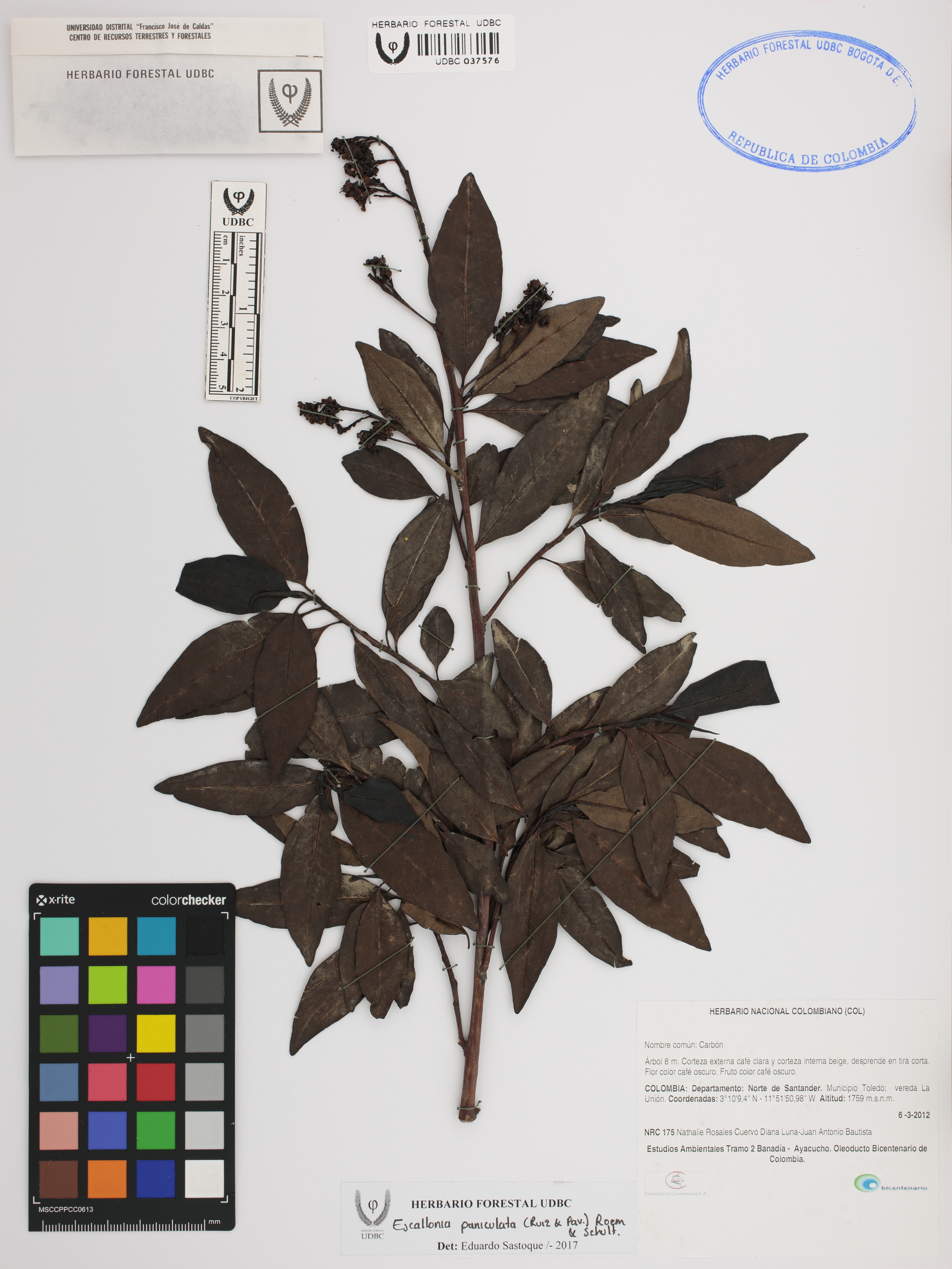Fotografía del ejemplar Rosales, N. 175, determinado como Escallonia paniculata en el año 2017