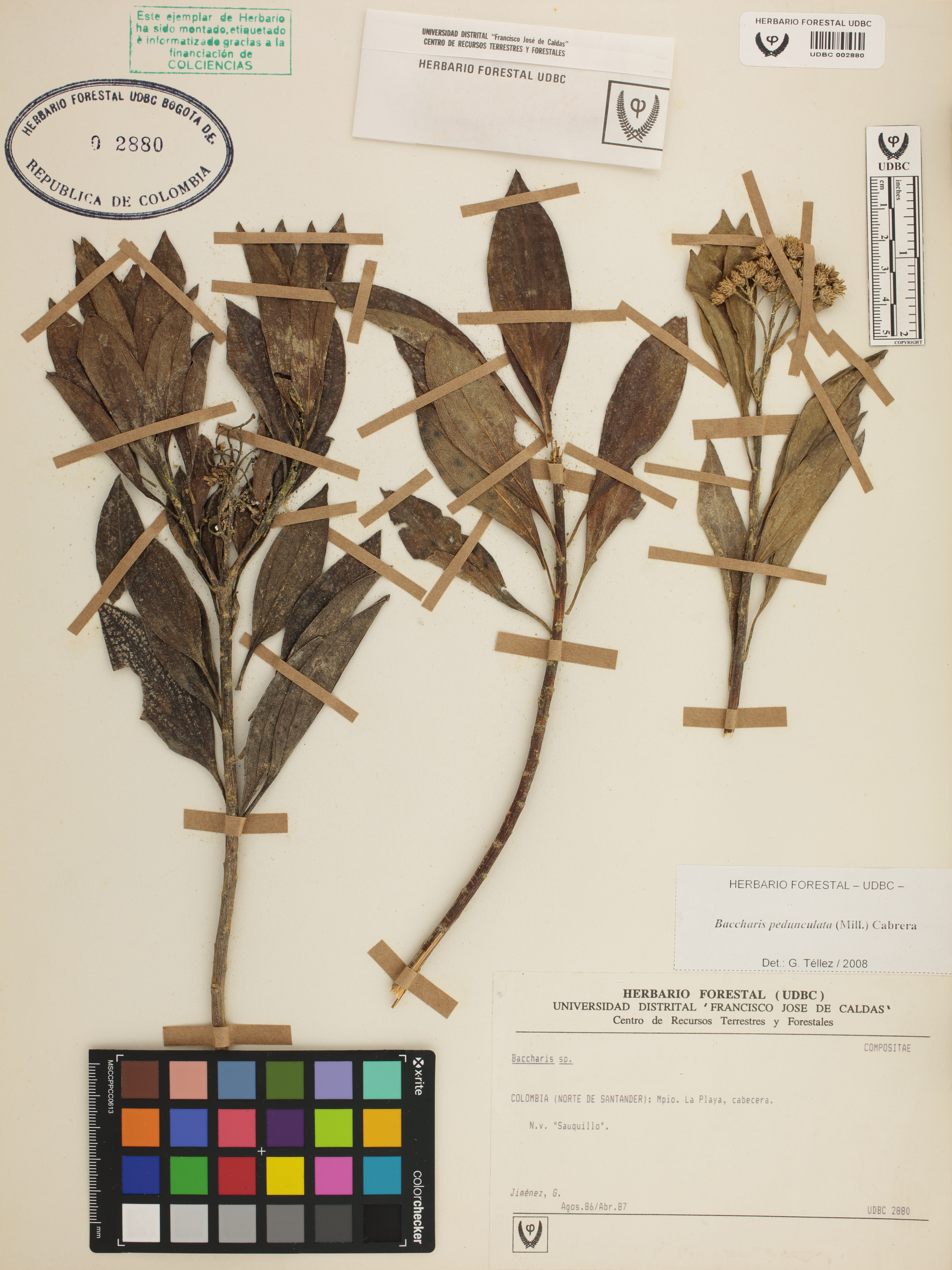 Fotografía del ejemplar Jiménez, G., determinado como Baccharis pedunculata en el año 2008