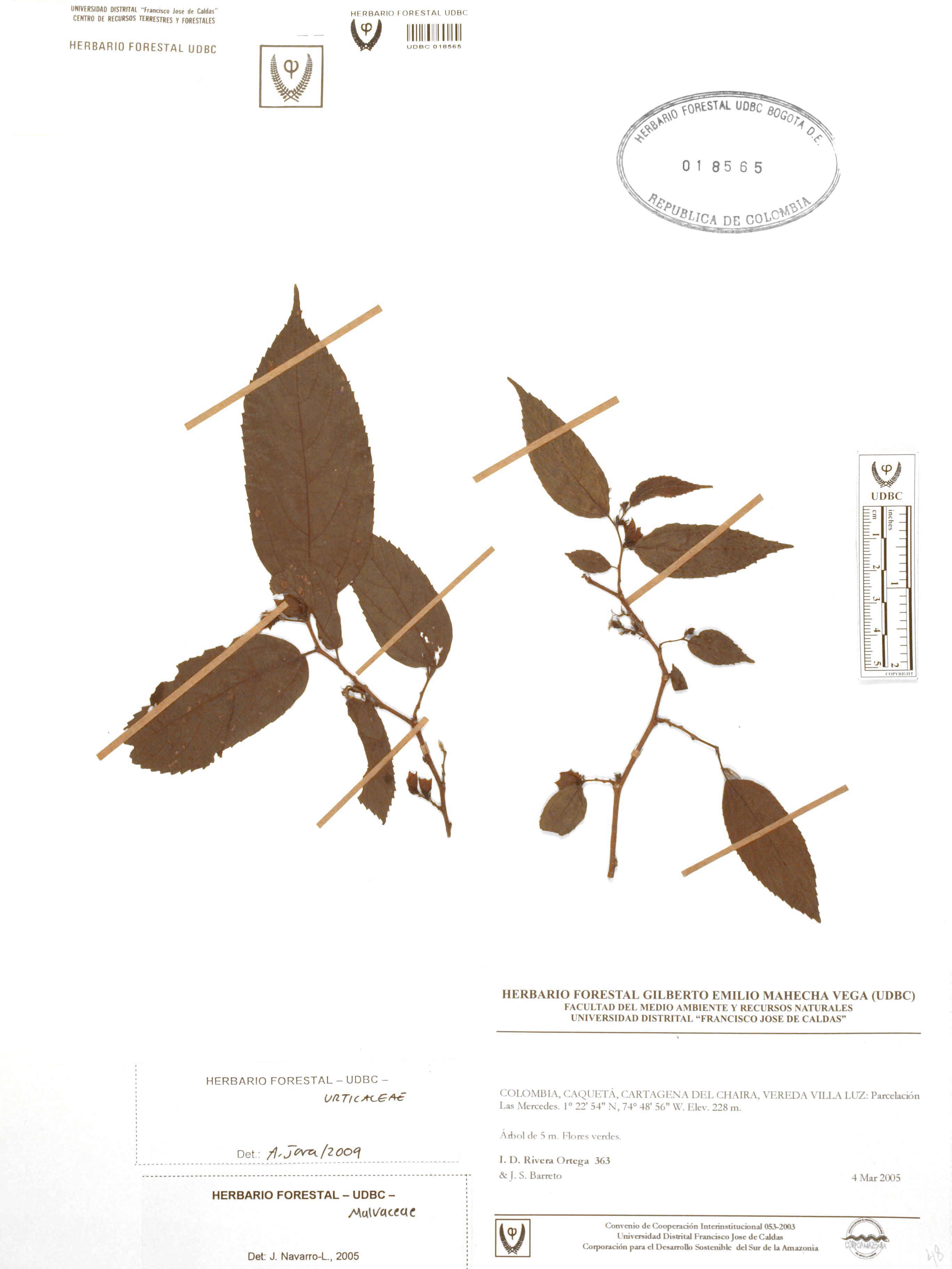 Fotografía del ejemplar Rivera, I. 363, determinado como Urticaceae en el año 2009