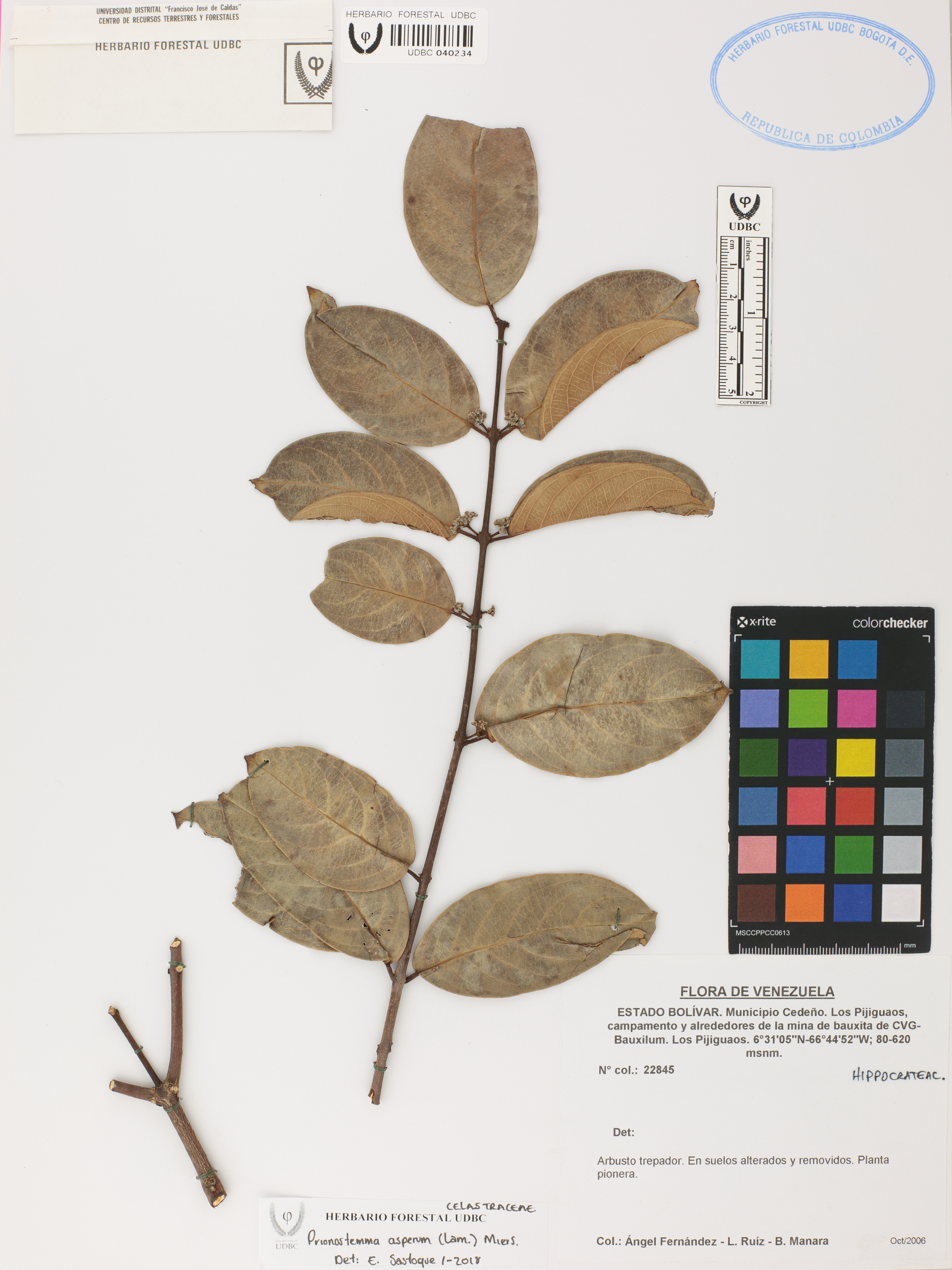 Fotografía del ejemplar Fernández, A. 22845, determinado como Prionostemma asperum en el año 2018