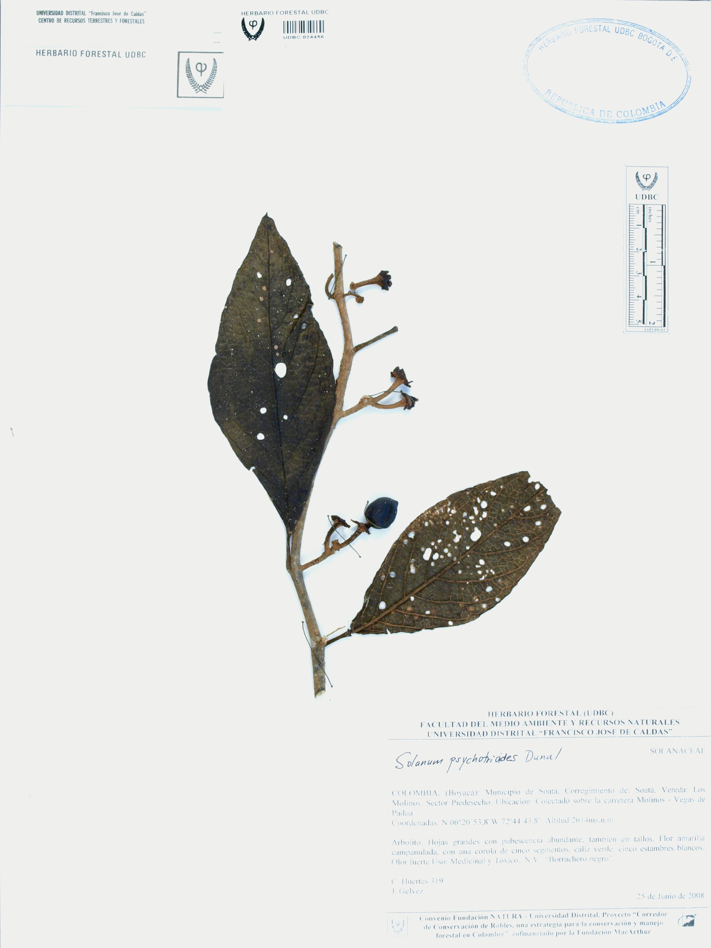 Fotografía del ejemplar Huertas, C. 319, determinado como Solanum psychotrioides