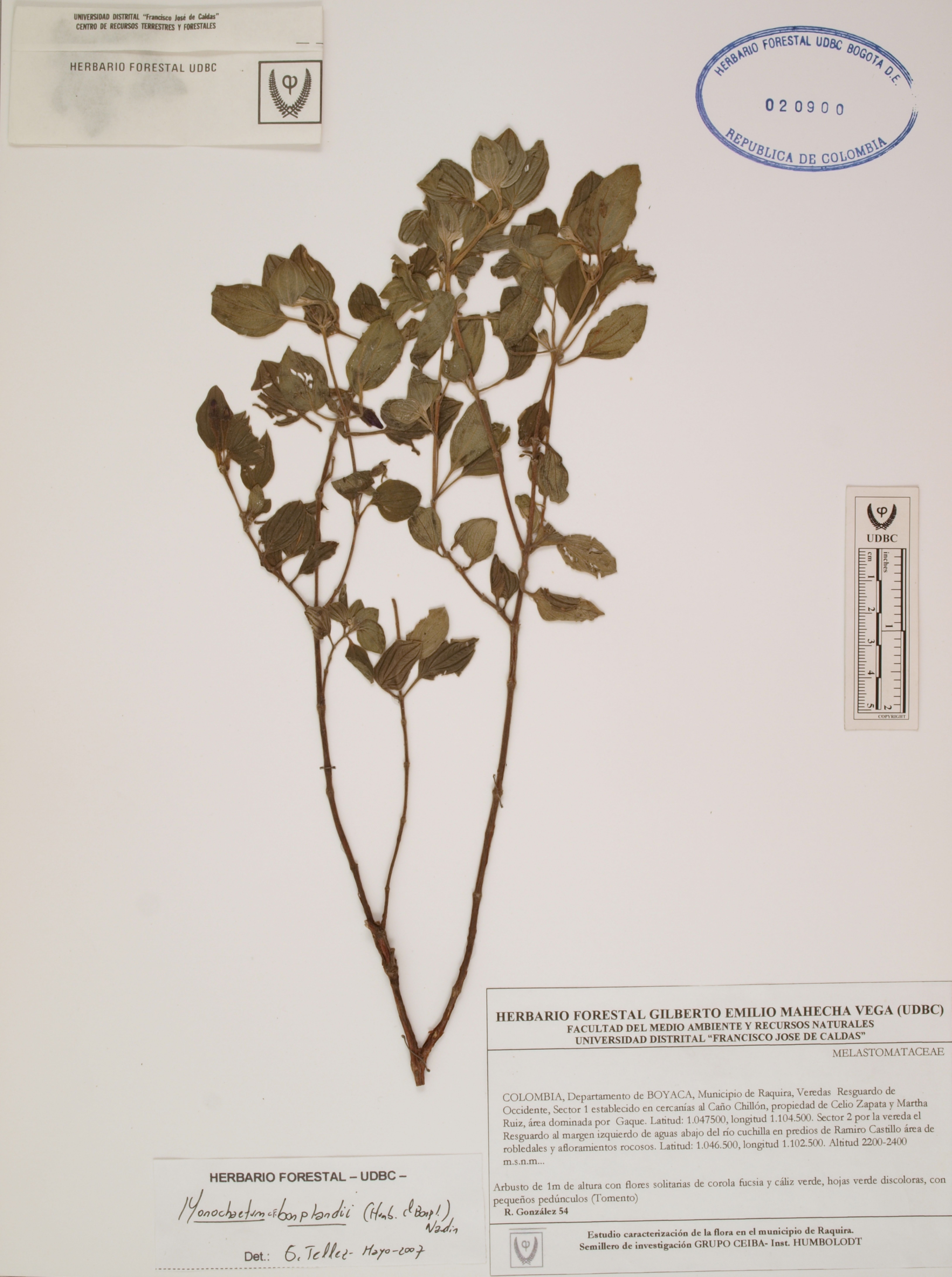 Fotografía del ejemplar González, R. 54, determinado como Monochaetum bonplandii en el año 2007