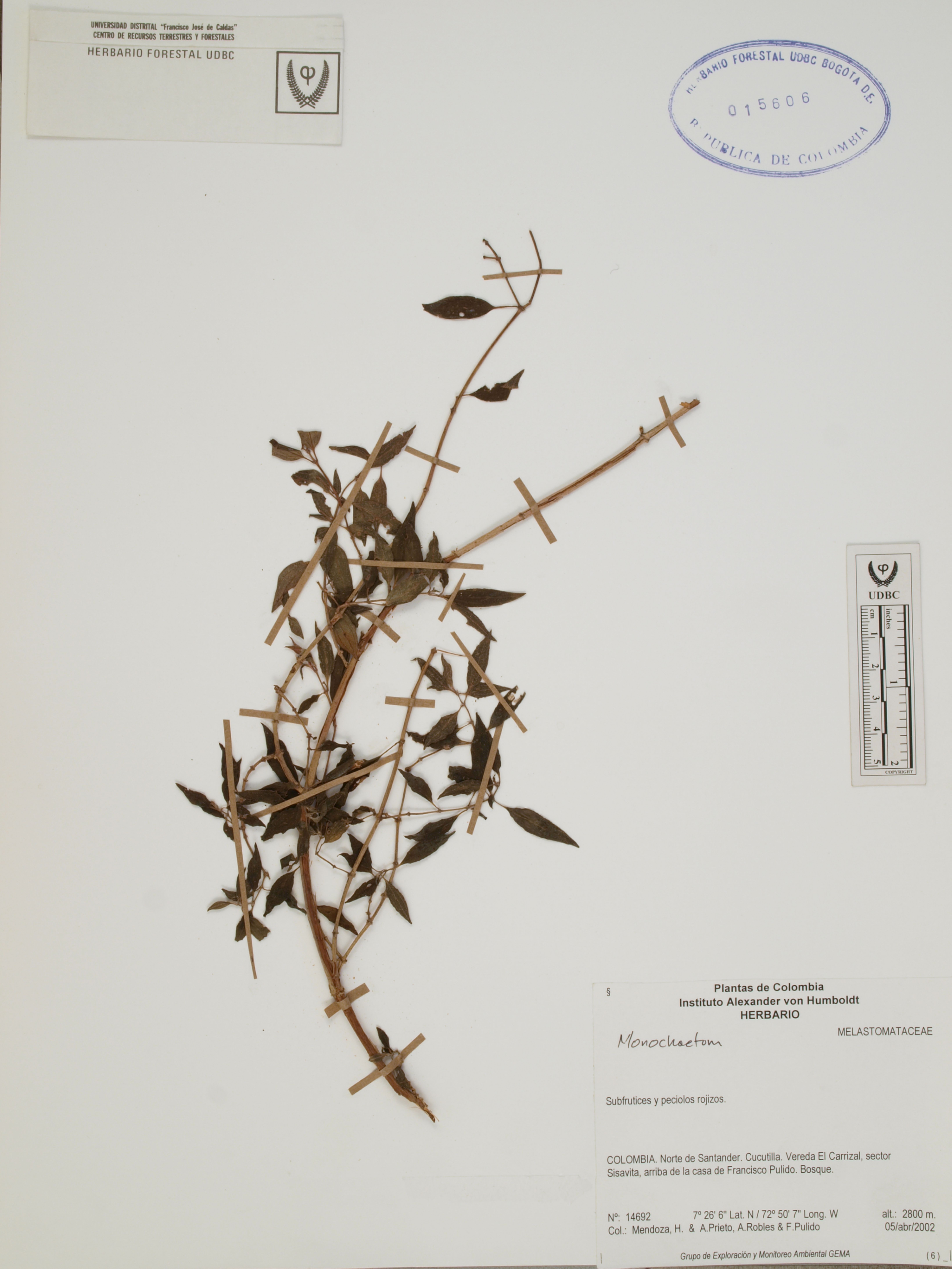 Fotografía del ejemplar Mendoza, H. 14692, determinado como Monochaetum sp. en el año 2007