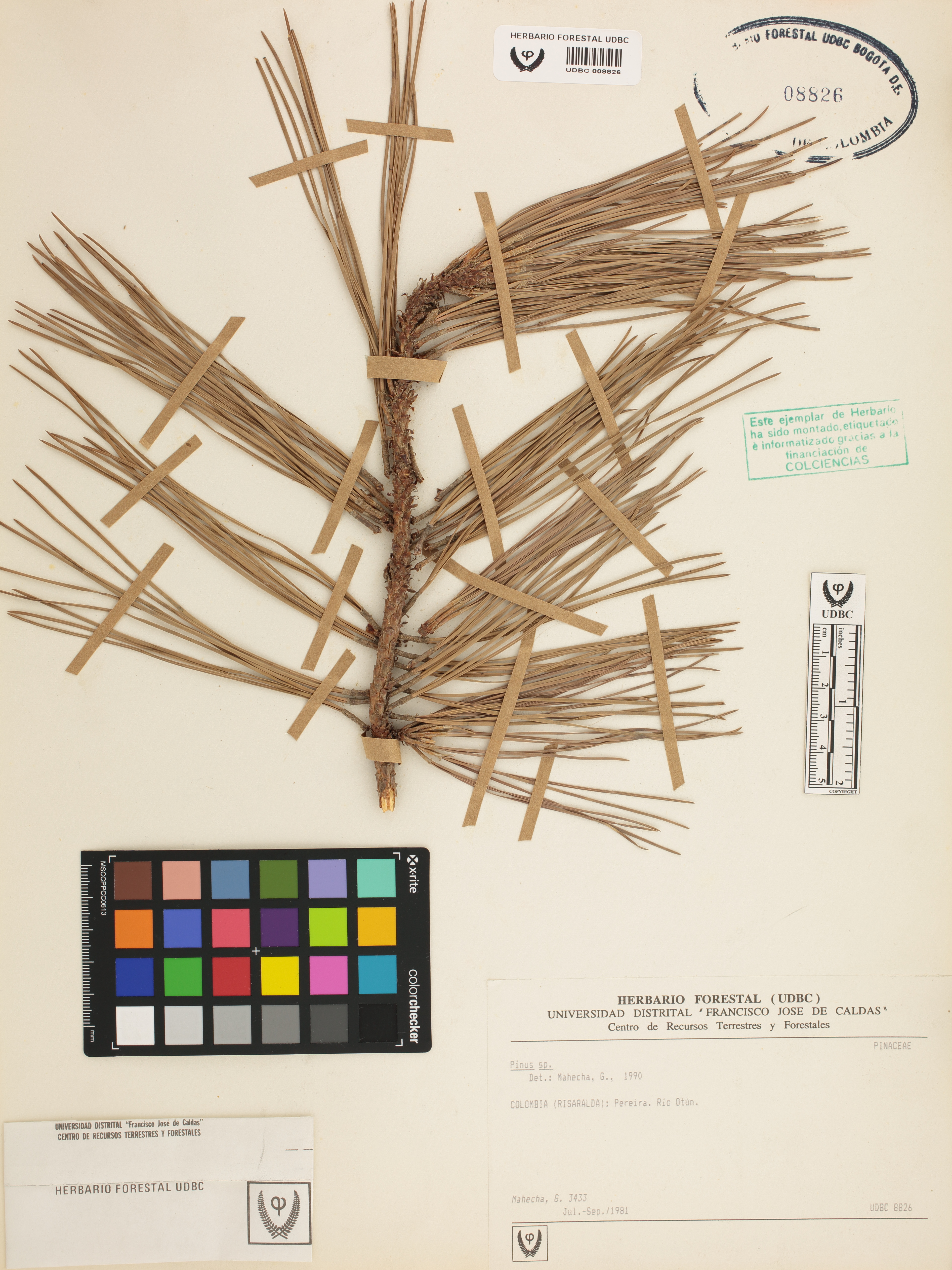 Fotografía del ejemplar Mahecha, G. 3433, determinado como Pinus sp. en el año 1990