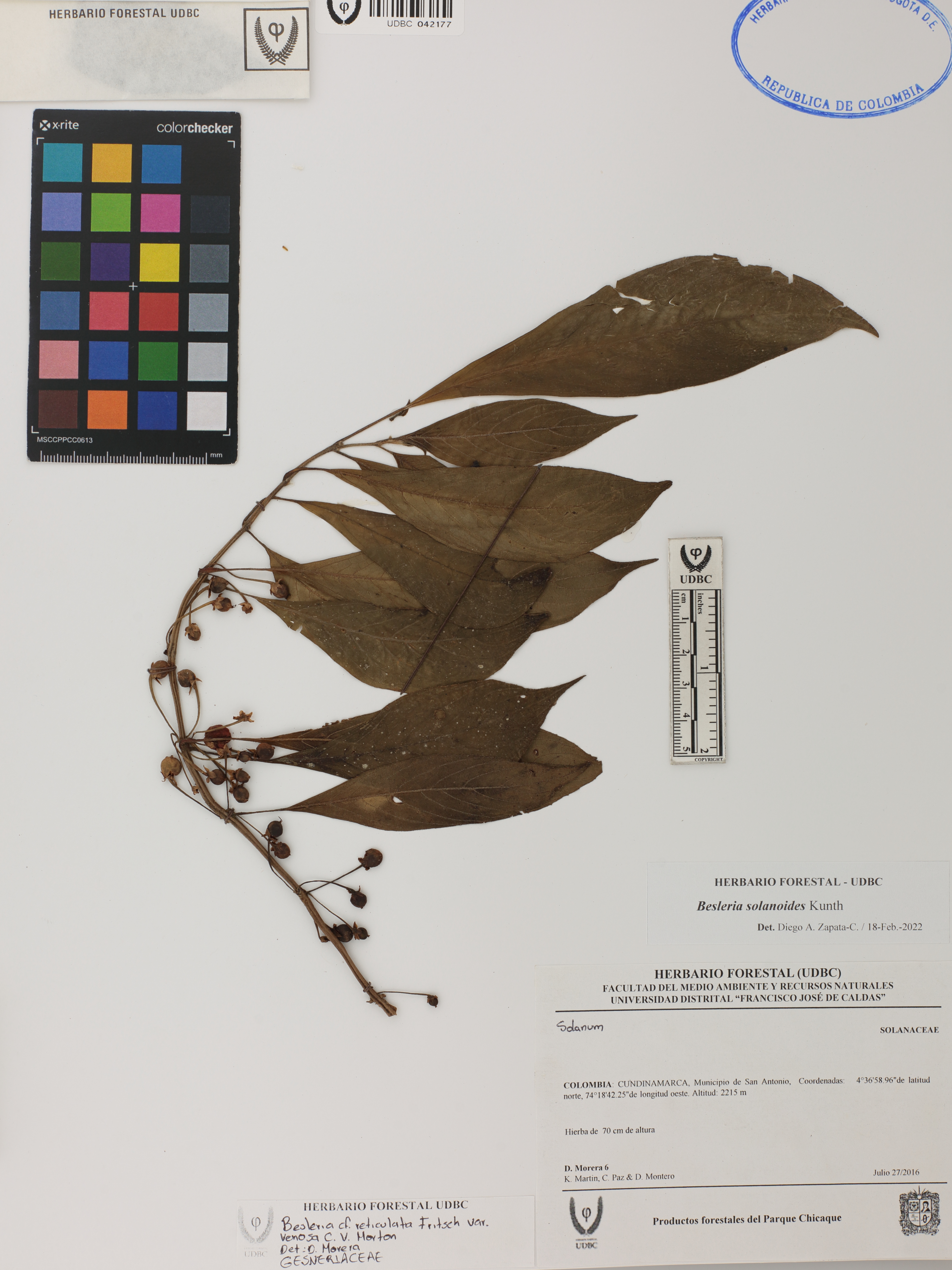 Fotografía del ejemplar Morera, D. 6, determinado como Besleria solanoides en el año 2022