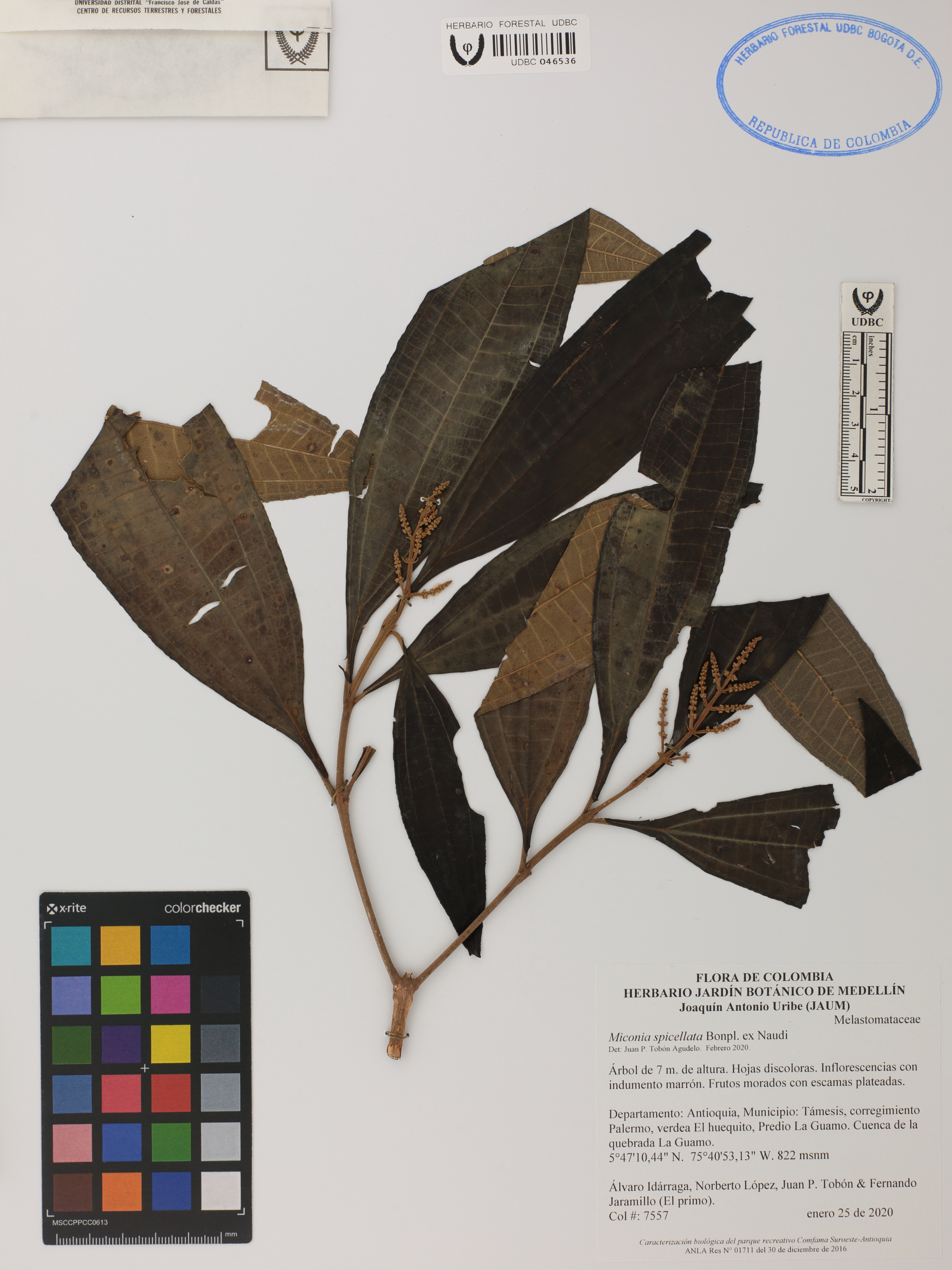 Fotografía del ejemplar Idárraga, Á. 7557, determinado como Miconia spicellata en el año 2020