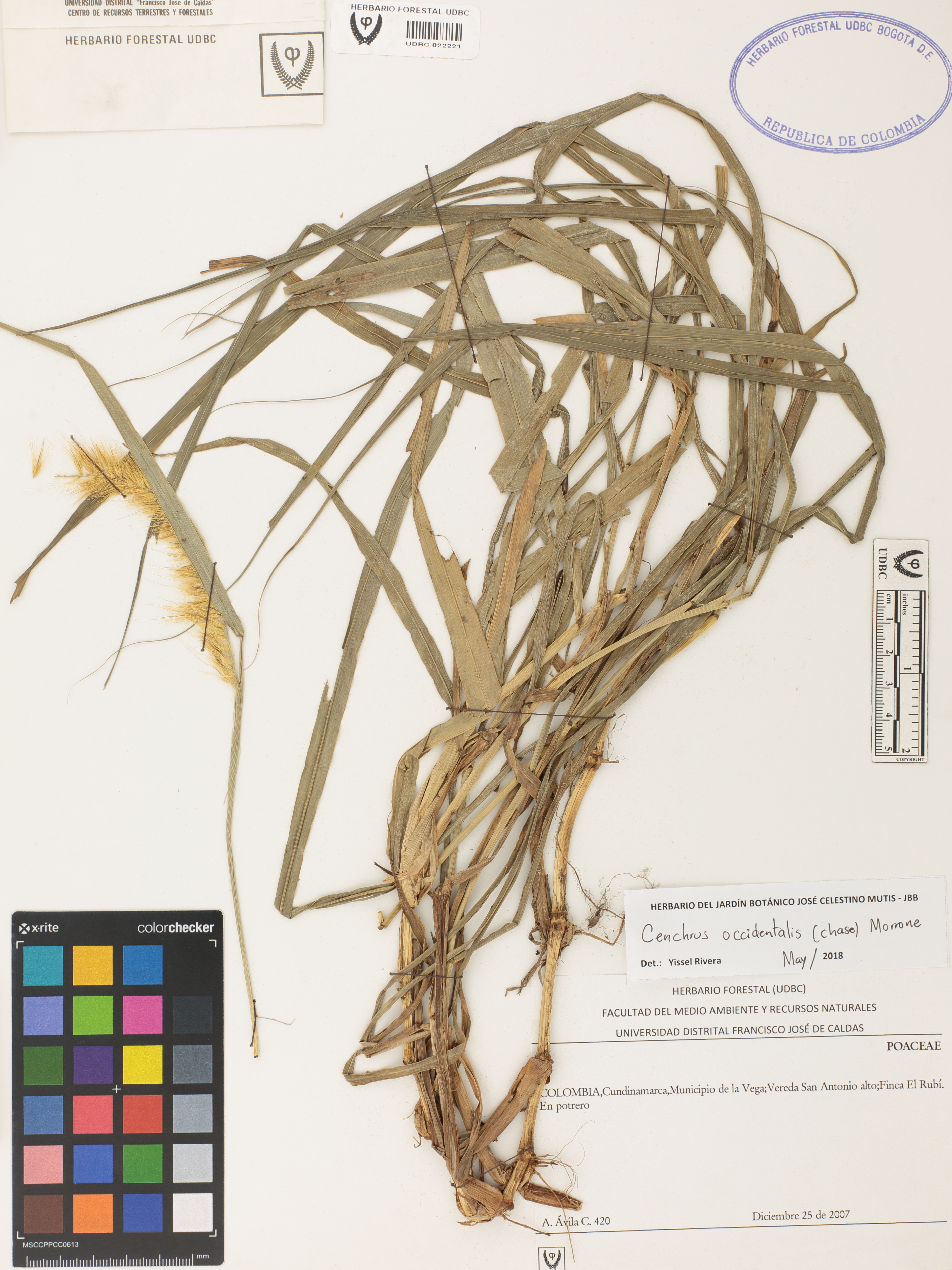 Fotografía del ejemplar Ávila, F. 420, determinado como Cenchrus occidentalis en el año 2018