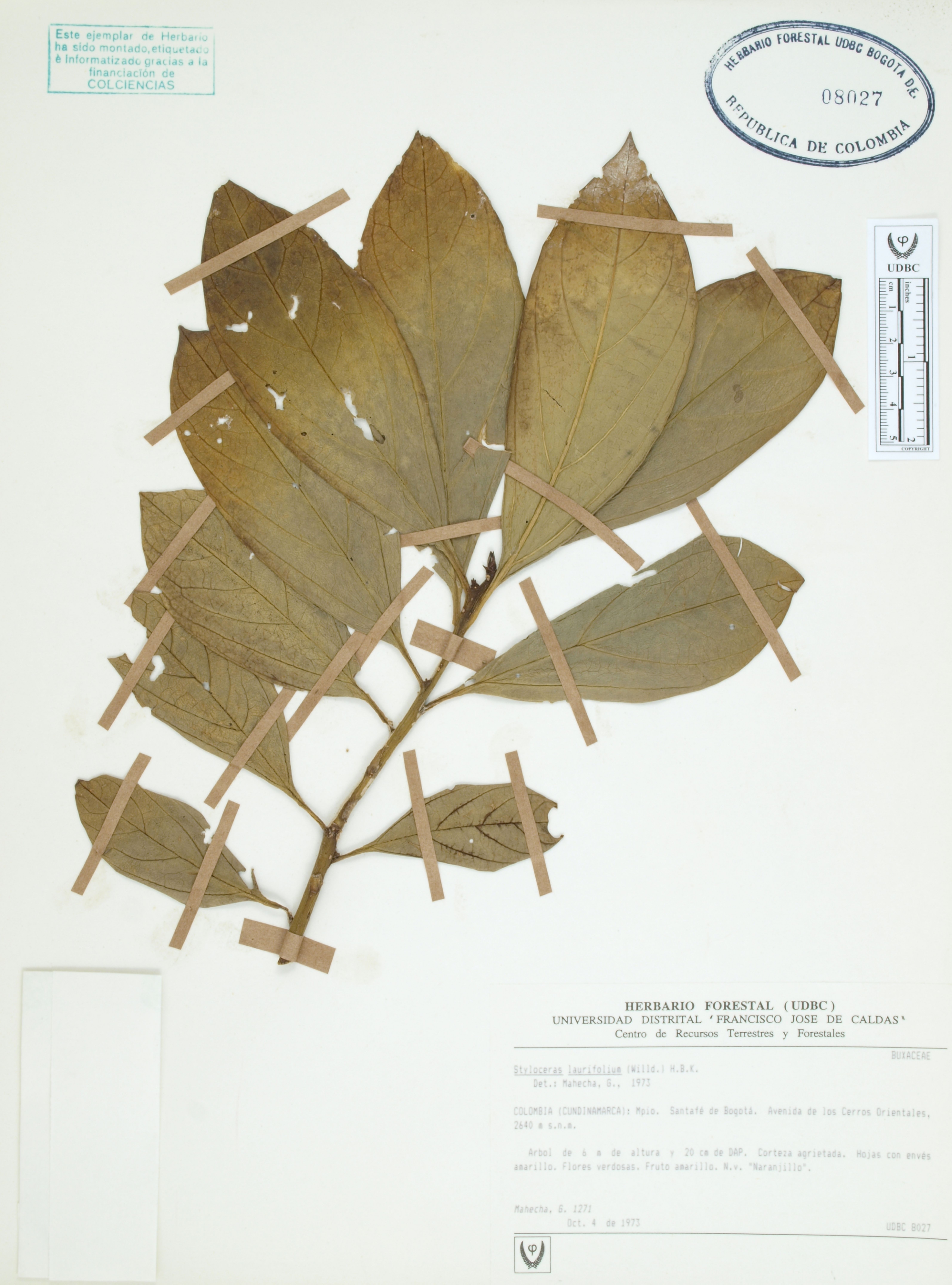 Fotografía del ejemplar Mahecha, G. 1271, determinado como Styloceras laurifolium