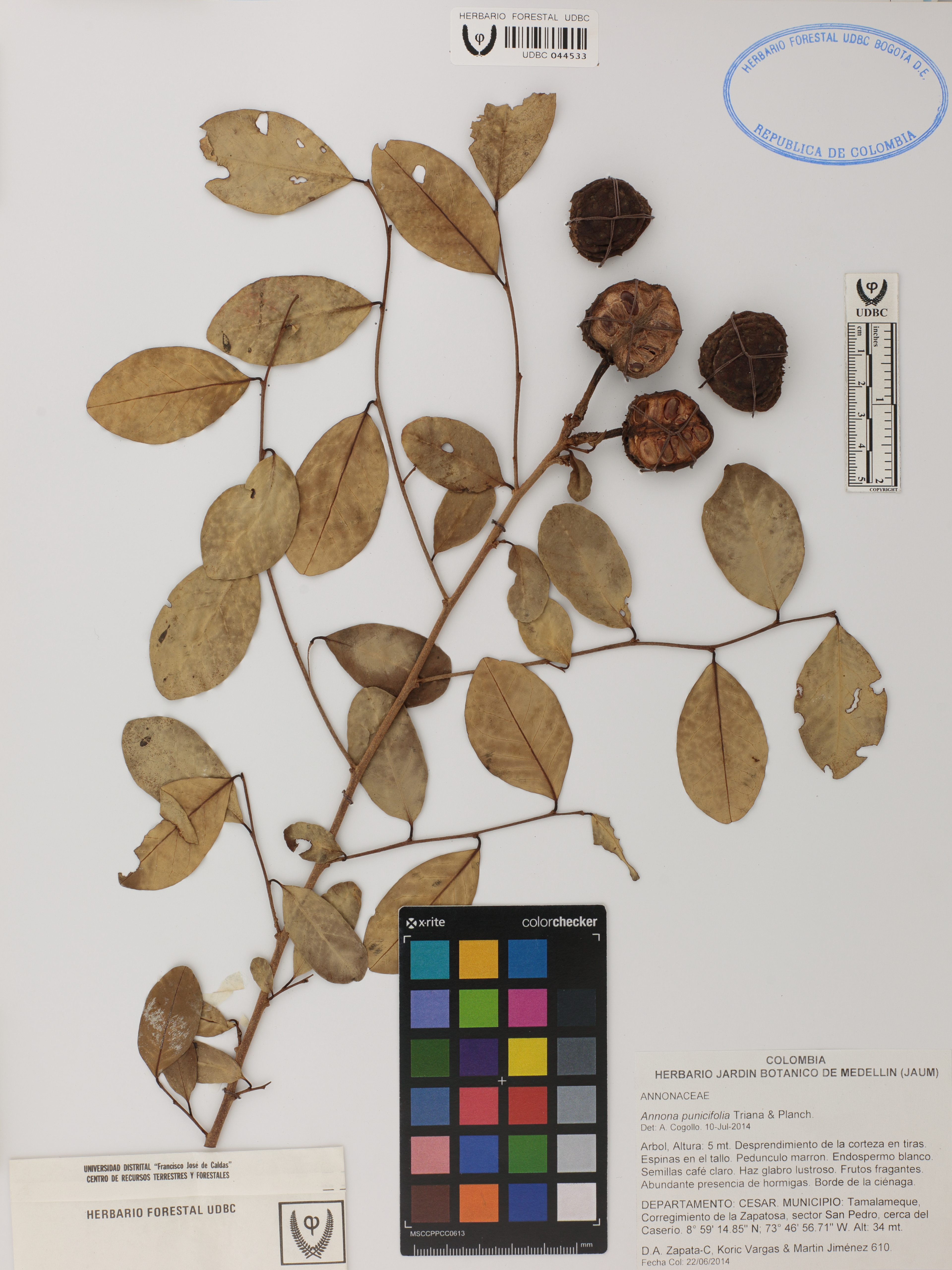 Fotografía del ejemplar Zapata-C., D. 610, determinado como Annona punicifolia en el año 2014