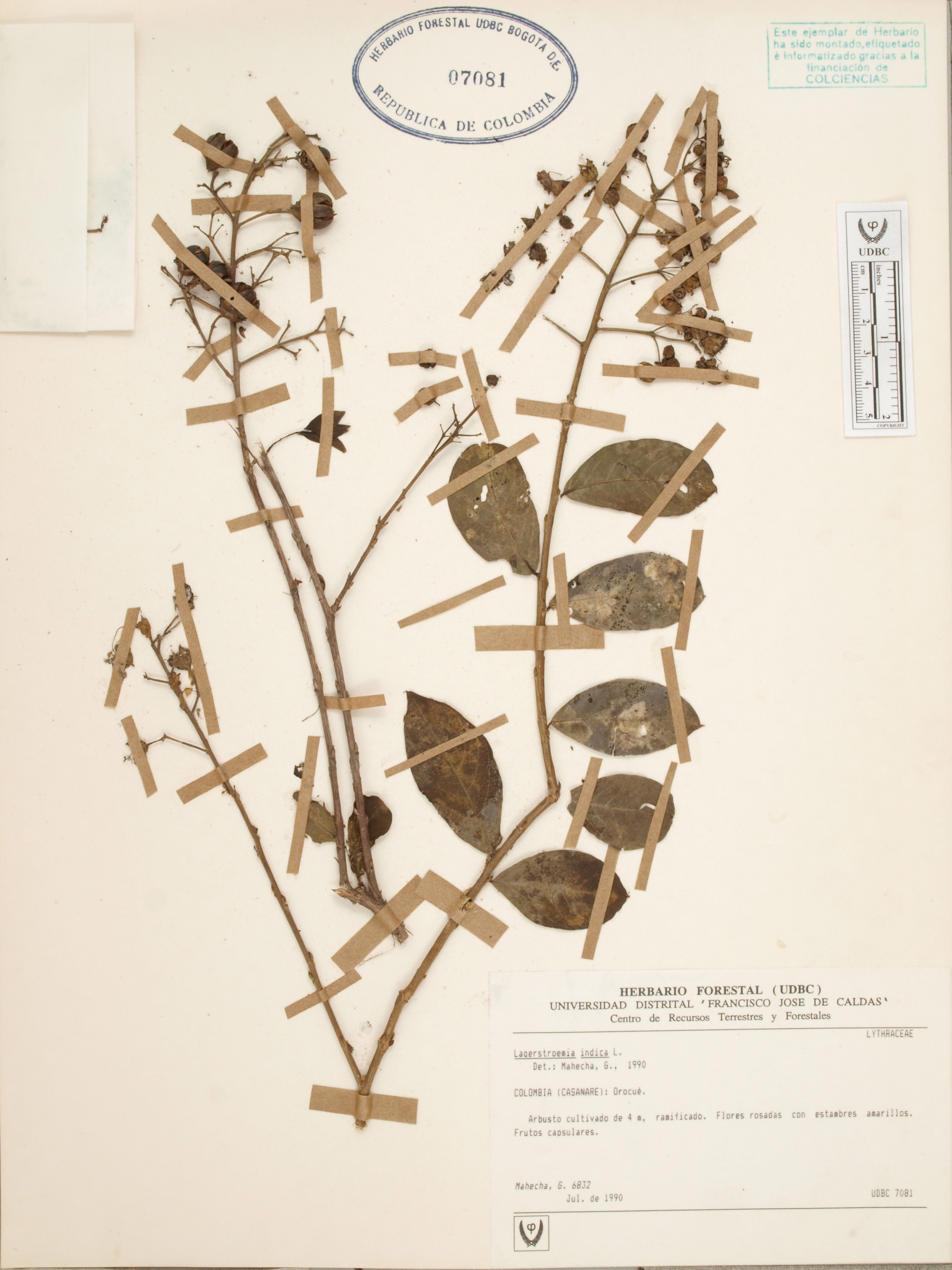 Fotografía del ejemplar Mahecha, G. 6832, determinado como Lagerstroemia indica