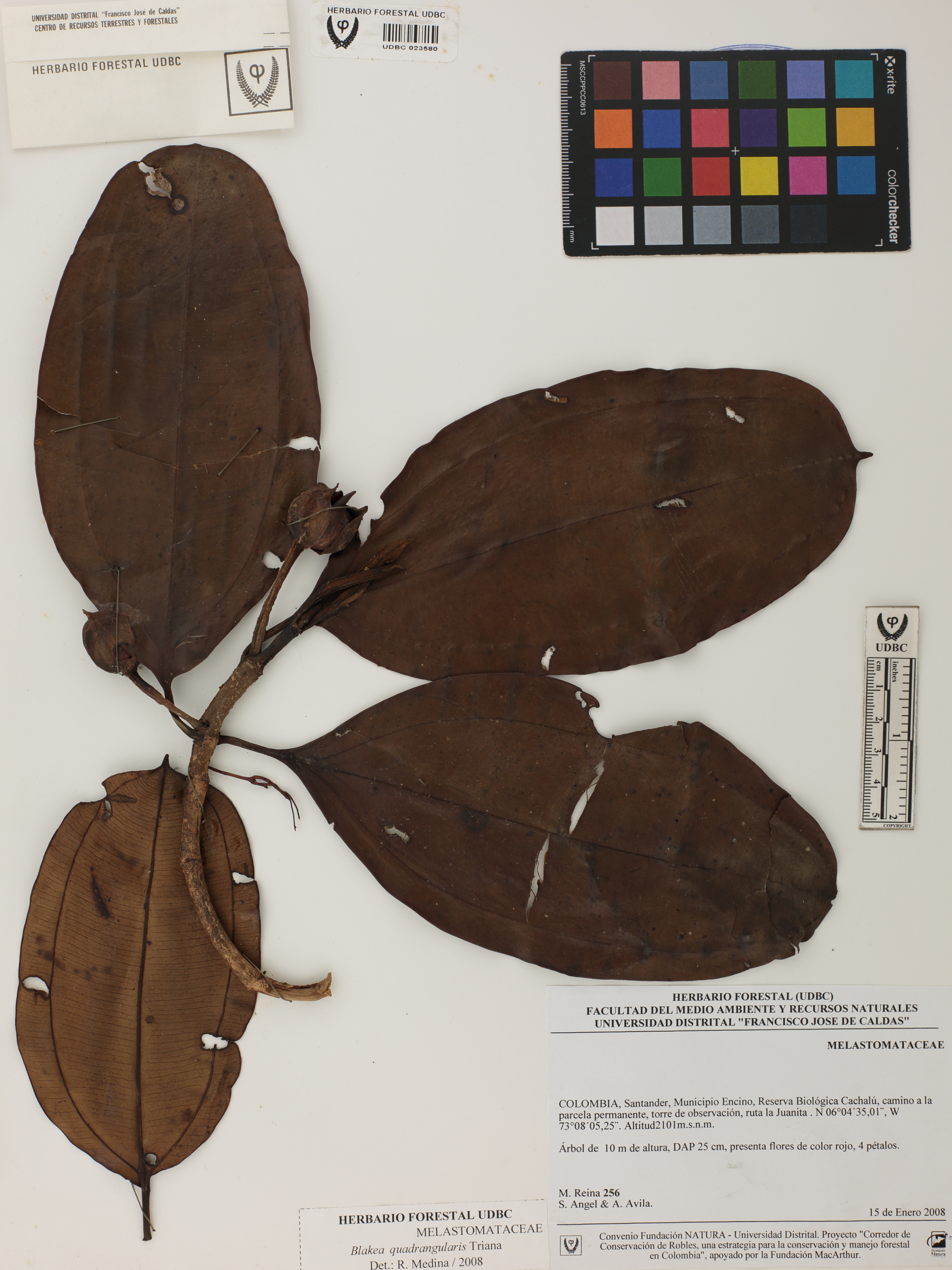 Fotografía del ejemplar Reina, M. 256, determinado como Blakea quadrangularis en el año 2008