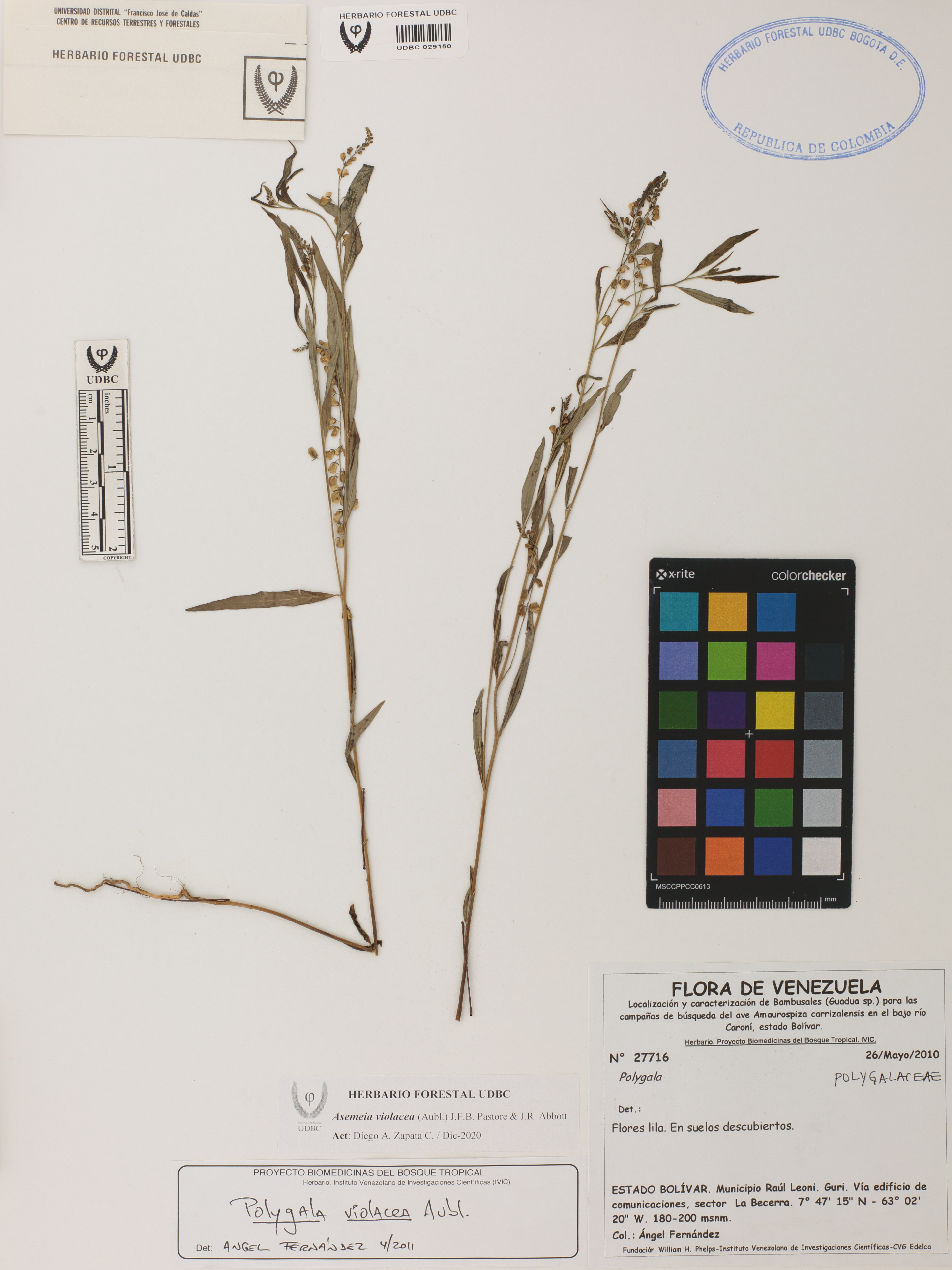 Fotografía del ejemplar Fernández, A. 27716, determinado como Asemeia violacea en el año 2011