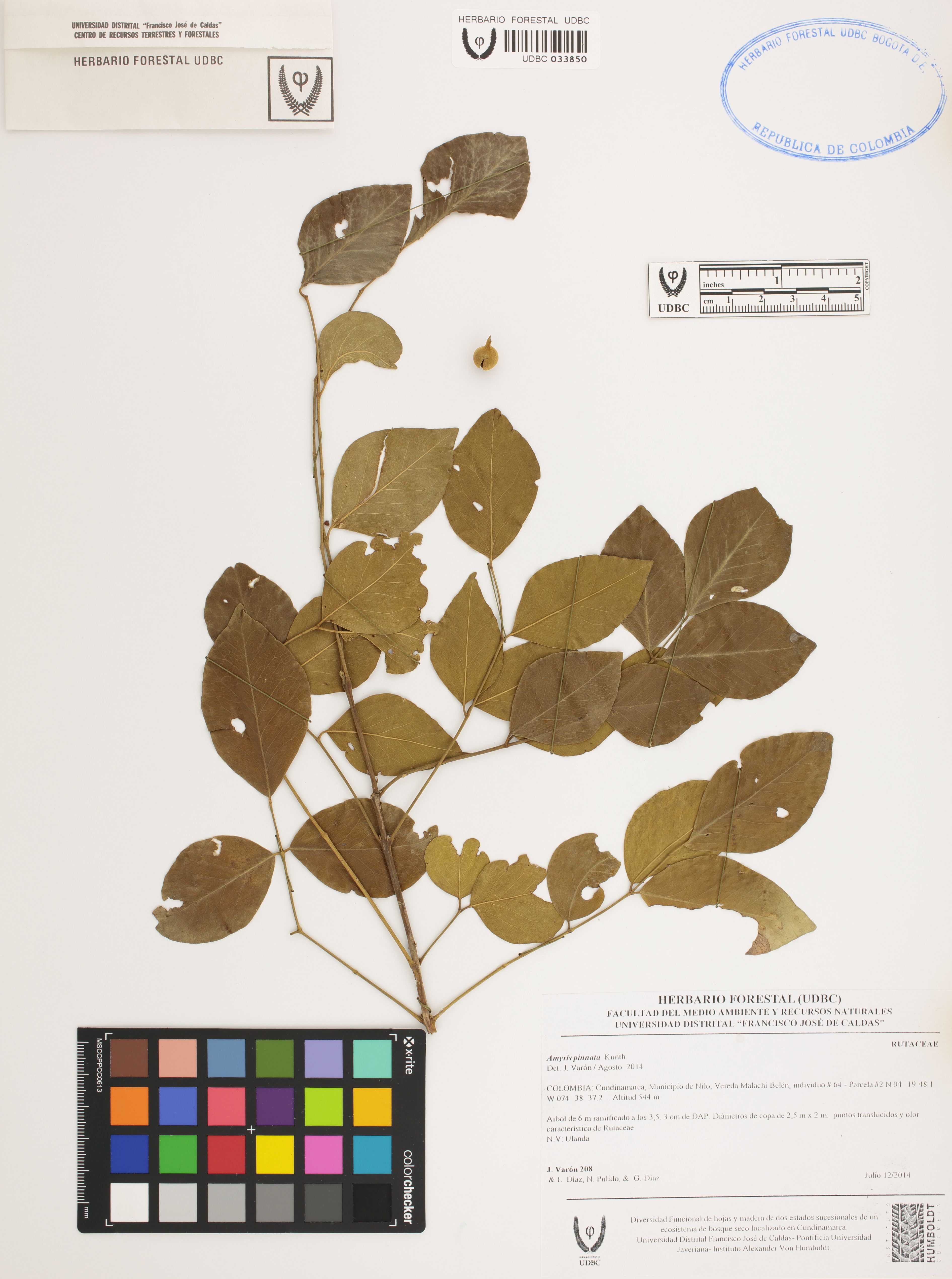 Fotografía del ejemplar Varón, J. 208, determinado como Amyris pinnata en el año 2014