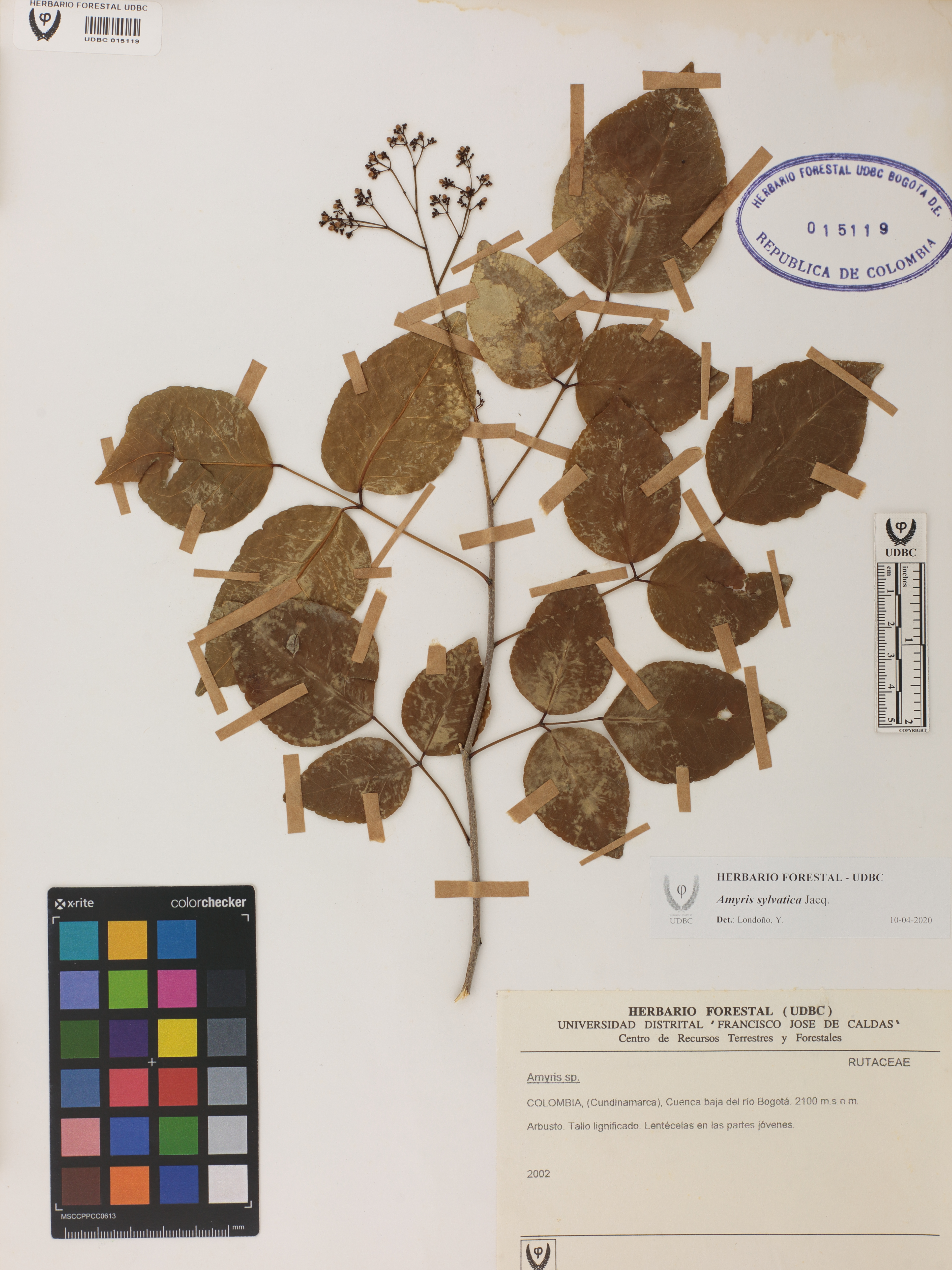 Fotografía del ejemplar SD, determinado como Amyris sylvatica en el año 2020