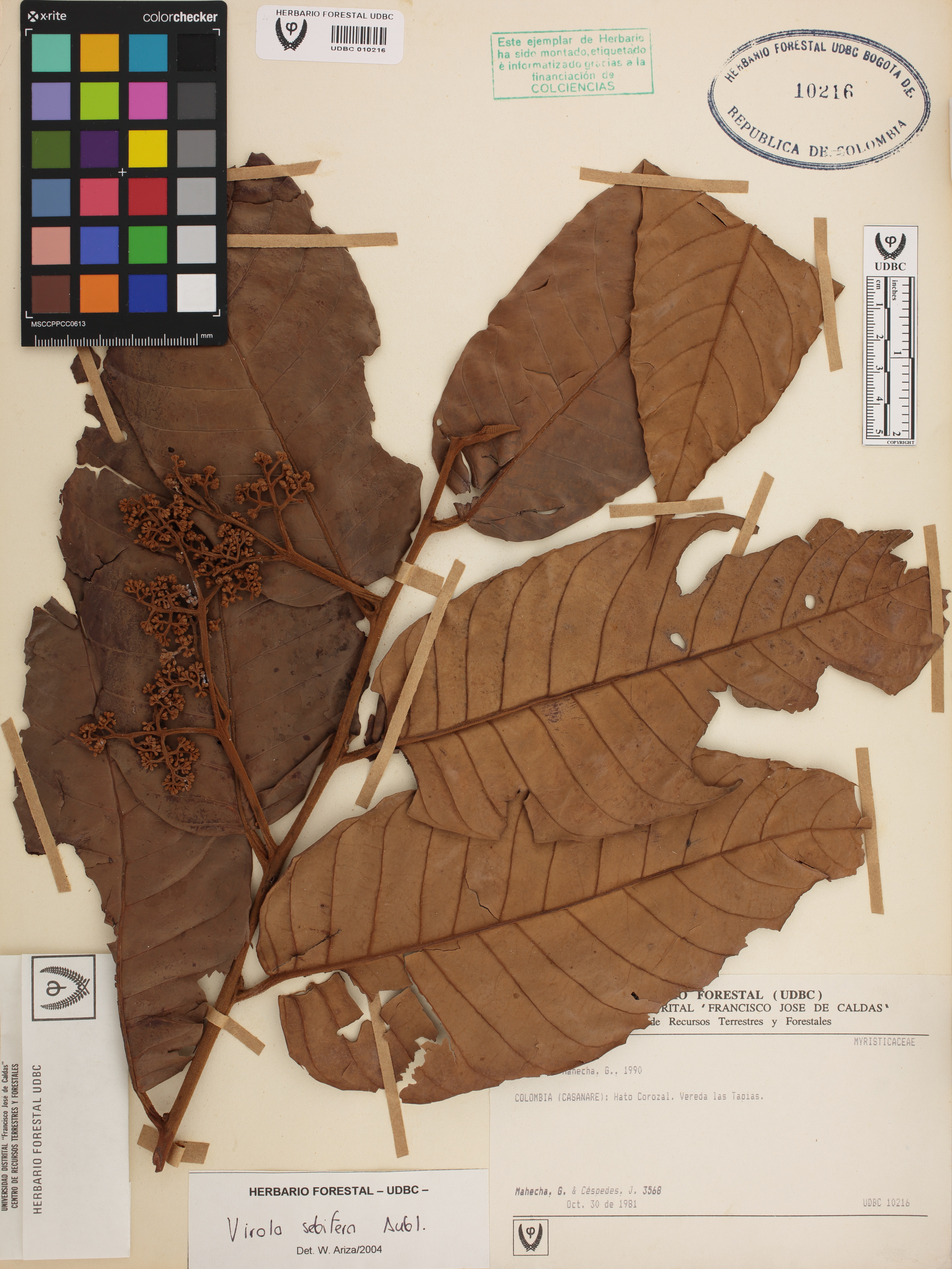 Fotografía del ejemplar Mahecha, G. 3568, determinado como Virola sebifera en el año 2004